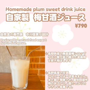 長期熟成の無農薬梅シロップに、長野県産の甘酒を加えたアイスドリンクです。