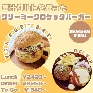 毎年恒例!秋冬限定の【豆汁グルトを使ったveganクリーミークロケッタバーガー】
